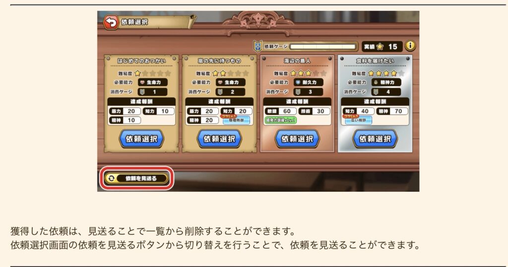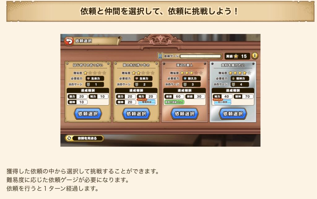 依頼システムを使いこなして、効率よく強いキャラを育成しましょう。